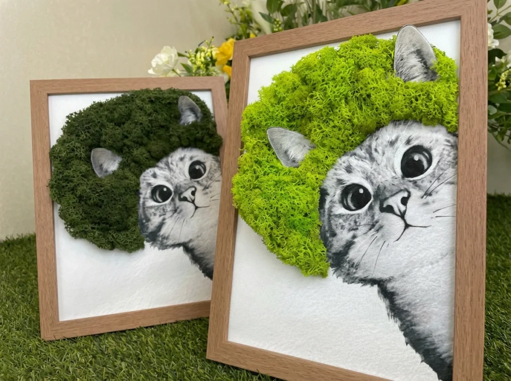 Kizárólag prémium minőségű, stabilizált izlandi mohát használunk, ami évekig megőrzi szépségét gondozás nélkül.